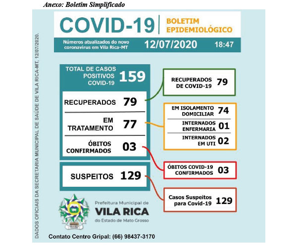 Boletim Epidemiológico do dia 12 de julho