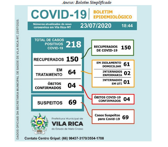 Boletim Epidemiológico do dia 23 de julho