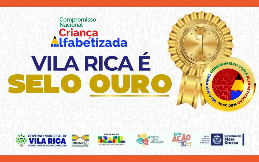O município de Vila Rica, recebeu esta semana a informação que foi certificado com o Selo Ouro do Compromisso Nacional Criança Alfabetizada, certificação concedida às cidades que se destacam por ações efetivas voltadas à alfabetização na idade certa.