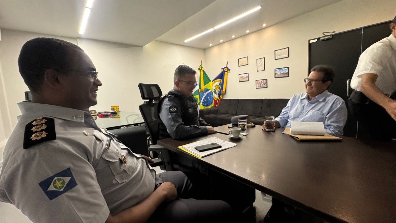 Na parte da tarde desta quarta-feira, João Salomão se reuniu com o Coronel PM Claudio Fernando Tinoco, comandante-geral da Polícia Militar de Mato Grosso, para tratar de temas referentes a segurança pública local, e também sobre a finalização das obras da sede do Comando Regional 10 da PM, sediado na cidade de Vila Rica e com jurisdição sobre a região Norte Araguaia.
