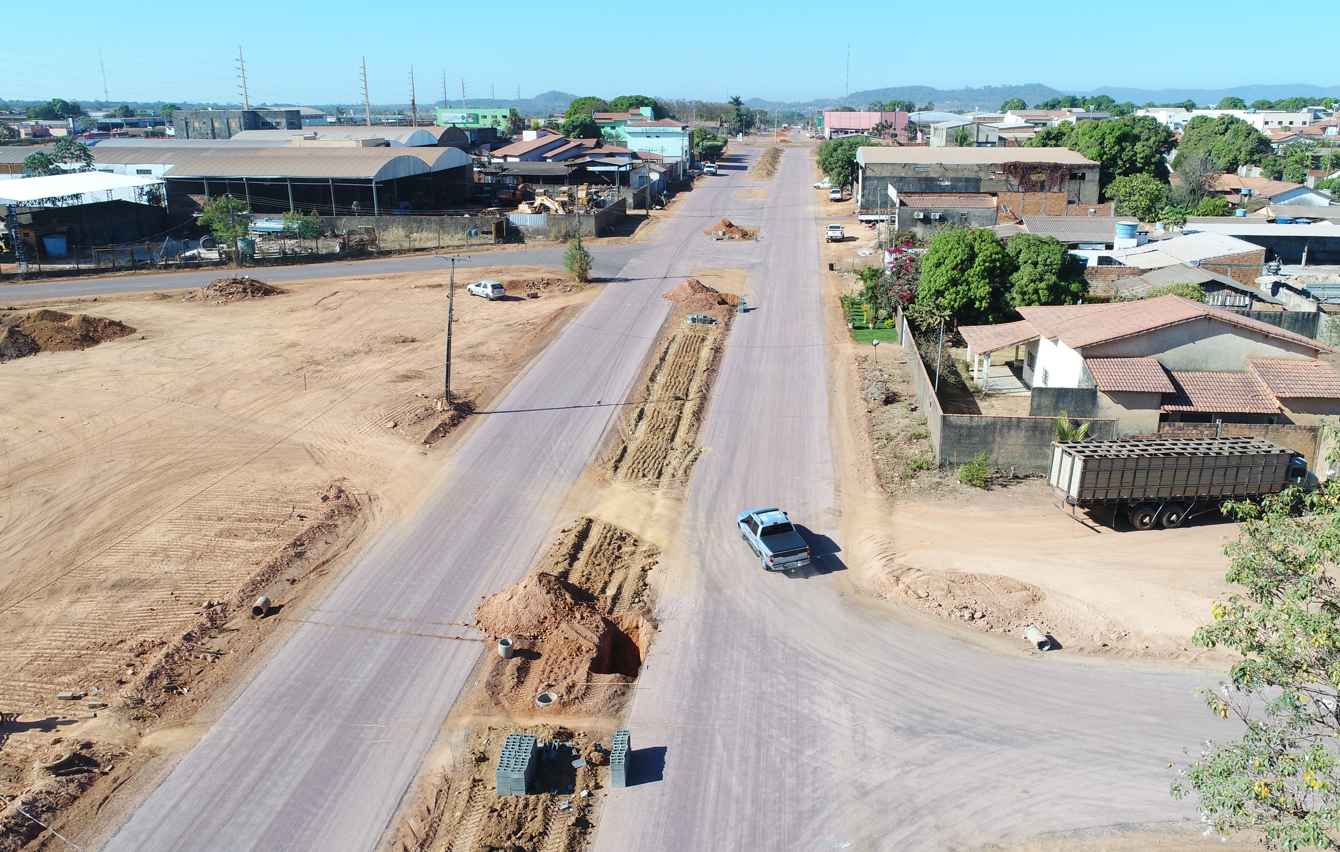 As obras de pavimentação asfáltica que hoje já se estende por quase todos os Bairros da Cidade e o plano do Governo Municipal é avançar cada vez mais, seguindo o planejamento do programa “Poeira Zero” em busca de deixar o município o mais perto possessível de ter todas as ruas e avenida asfaltadas.